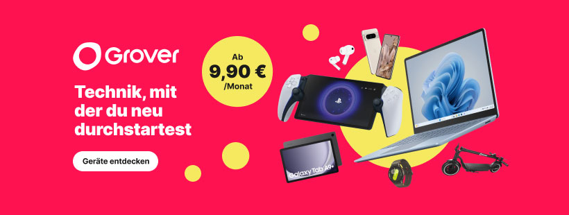 Wenn Sie die neuste Technik ausprobieren und nicht gleich kaufen wollen, können Sie Handys, Drohnen, Tablets, Kameras & Co. einfach bei Grover mieten. Der Online-Händler stellt Ihnen über 2.000 technische Gadgets zu einer flexiblen Miete zur Verfügung.